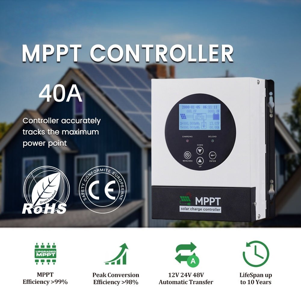 🔧 MPPT Solar Charge Controller 40A (12V–48V Auto-Recognition)