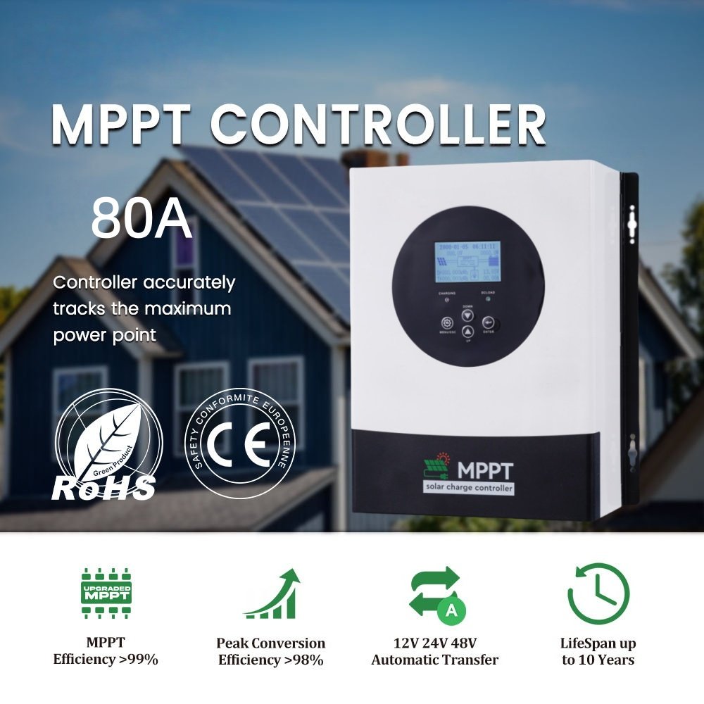 🔧 MPPT Solar Charge Controller 80A (12V–48V Auto-Recognition)